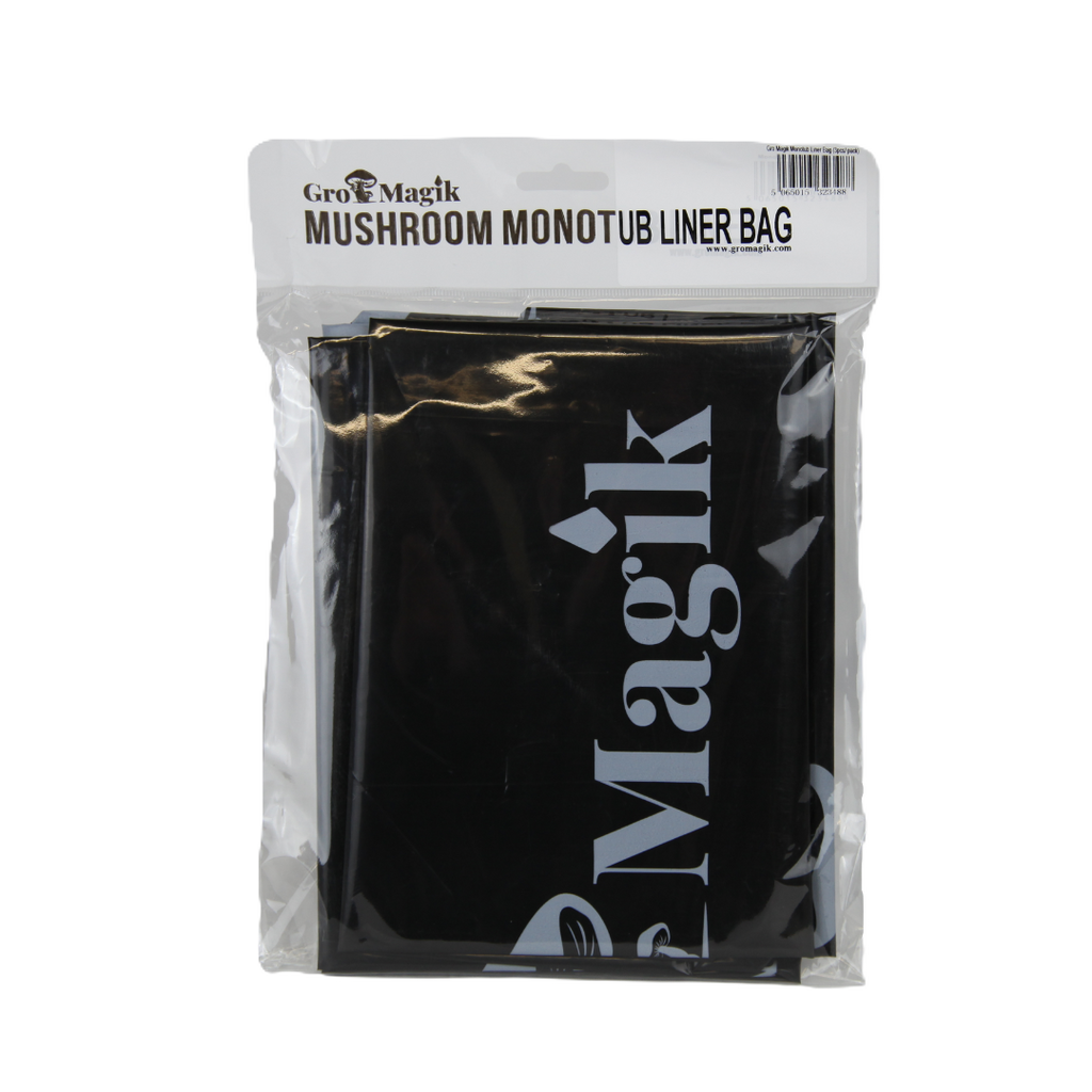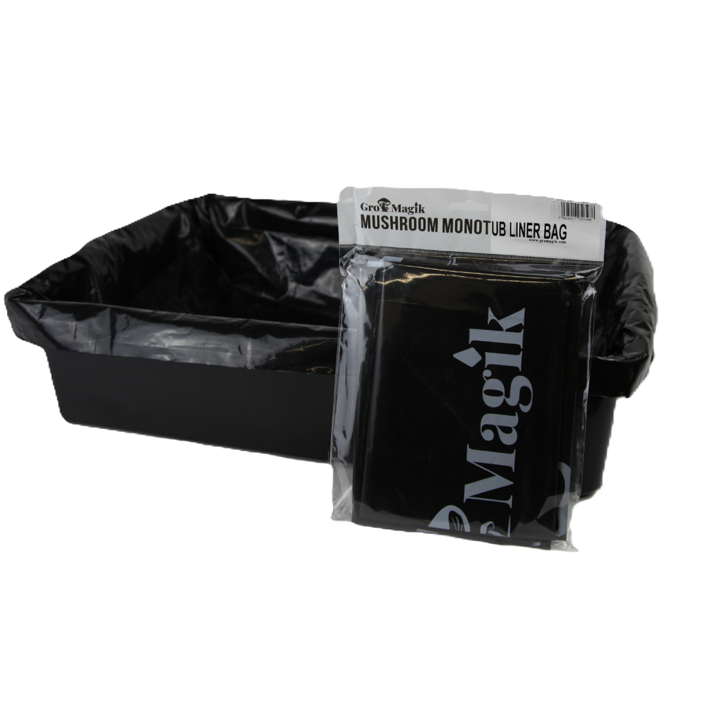These Black Monotub Liners are designed to fit securely inside large mushroom monotubs with interior dimensions around 22.5" L x 15.5" W x 5.5" Hcompatible with most 64-quart latching-style storage bins. and large size monotubs. These liners help maintain substrate structure, reduce side pinning, and simplify cleanup between cycles.